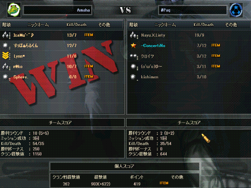 んでその後 LynnさんにCW呼ばれて Amahaってクランで一戦だけ